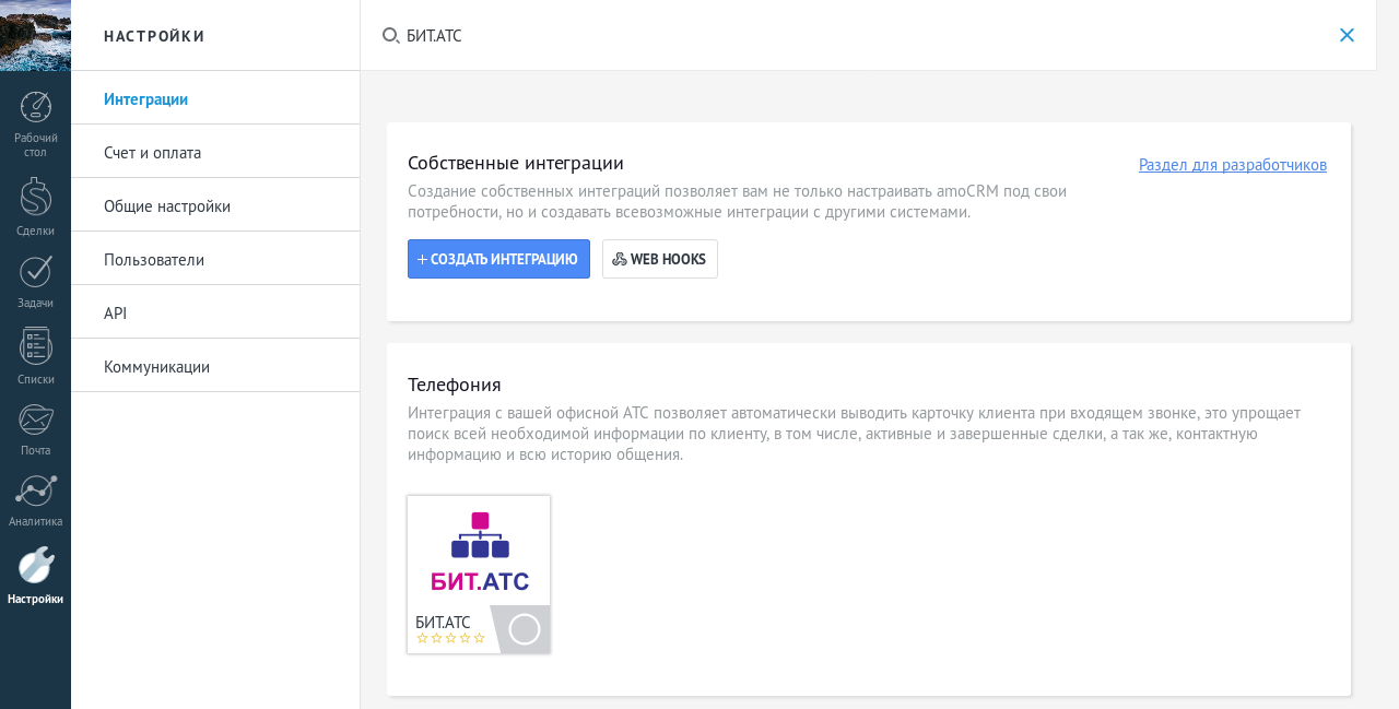2. В настройках модуля интеграции с БИТ.АТС укажите параметры: