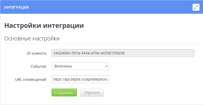 - URL оповещений вставить следующую ссылку: https://api.bitpbx.ru/api/telephony/atc/events