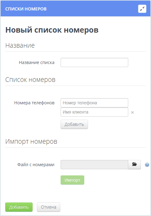 Файл с номерами - при наличии большого количества номеров их можно импортировать загрузив файл