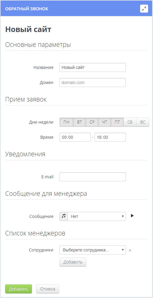 Обратный звонок с сайта
